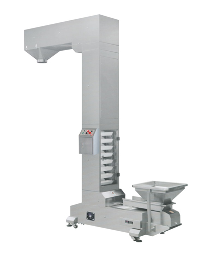 提升機(jī)適于輸送粉狀,粒狀及小塊狀的無磨琢性及磨琢性小的物料。例如膨化食品、飼料、糖果、干鮮果品、PVC塑料顆粒、寵物食品、糧食精加工處理、化工醫(yī)藥、五金電料等。